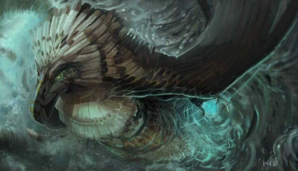 In Philippine folklore, Minokawa is a massive, dragon-like bird. To explain the occurrence of eclipses, early humans believed this creature was so large that it could swallow (or conceal) the sun. It is also represented as a big bird named Minokawa that resides in outer space, capable of devouring the sun and moon and attempting to do the same with the Earth.